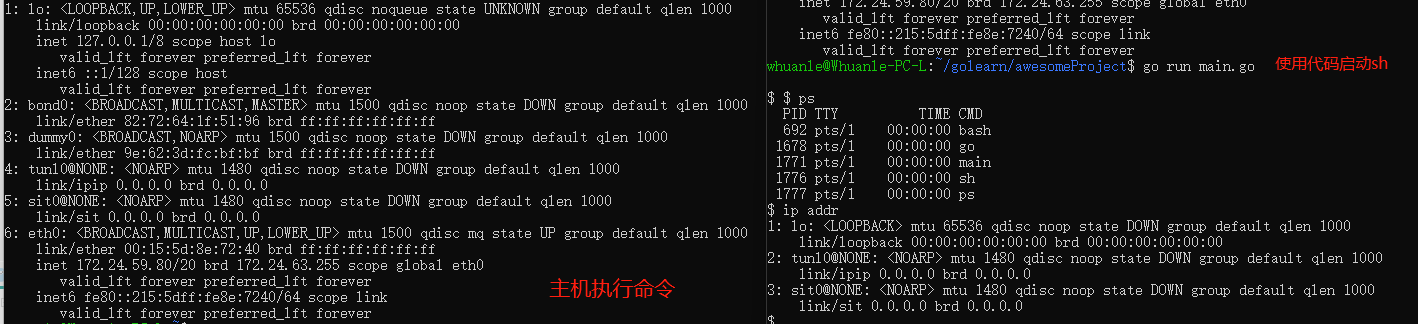 读者可以在 Linux 中,执行 go run main.go ,即可进入新的命名空间。