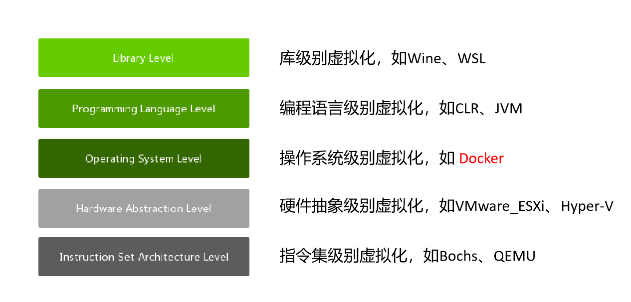 许多虚拟化软件不单单是在一个层面上,可能具有多种层次的虚拟化能力。