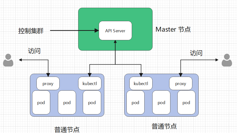 另外节点上还有 proxy,主要是为 Pod 提供代理服务,外界可通过此代理,使用节点的 IP 访问 Pod 中的容器。