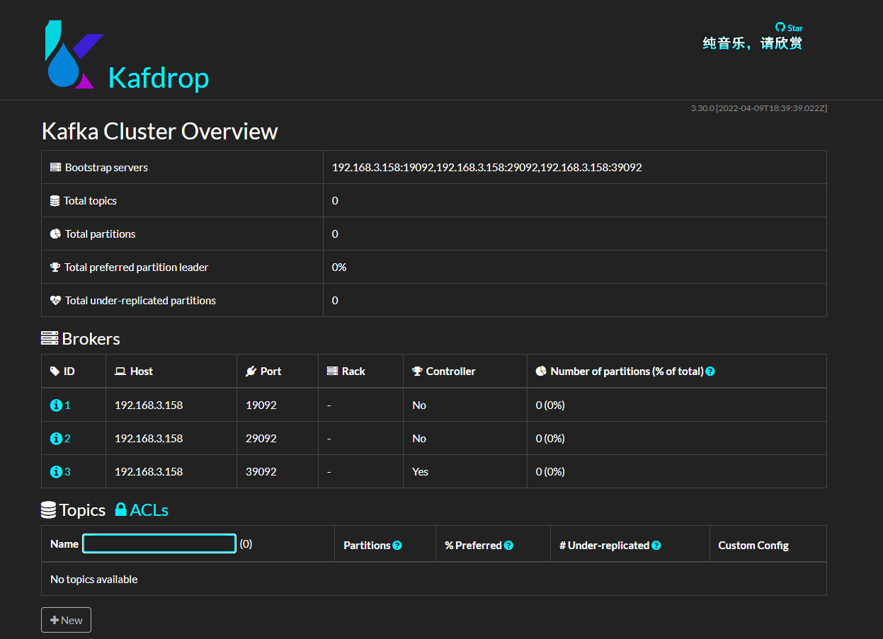 接着,安装 kafdrop,这是一个 Kafka 管理界面,可以很方便地查看一些信息。