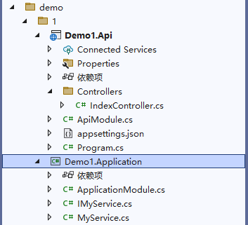 创建 Demo1.Api、Demo1.Application 两个项目,在 Demo1.Application 在中引入最新的 Maomi.Core 包。